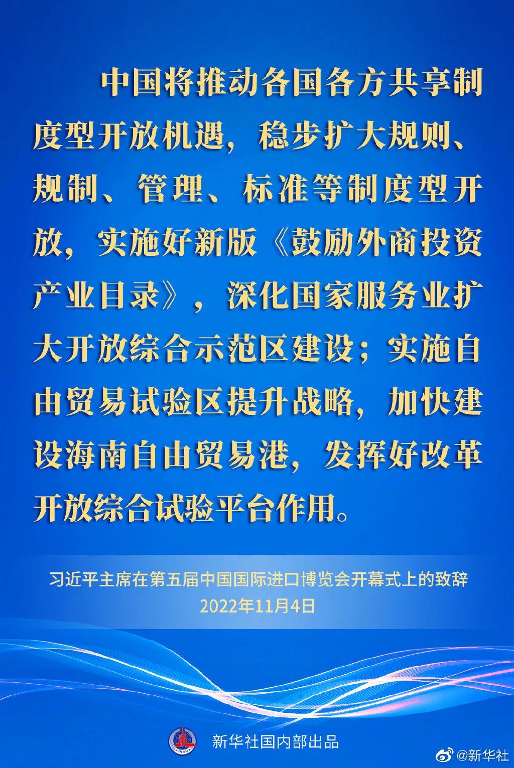 ——中國將推動各國各方共享制度型開放機遇,穩(wěn)步擴大規(guī)則、規(guī)制、管理、標準等制度型開放,實施好新版《鼓勵外商投資產(chǎn)業(yè)目錄》,深化國家服務業(yè)擴大開放綜合示范區(qū)建設(shè);實施自由貿(mào)易試驗區(qū)提升戰(zhàn)略,加快建設(shè)海南自由貿(mào)易港,發(fā)揮好改革開放綜合試驗平臺作用。