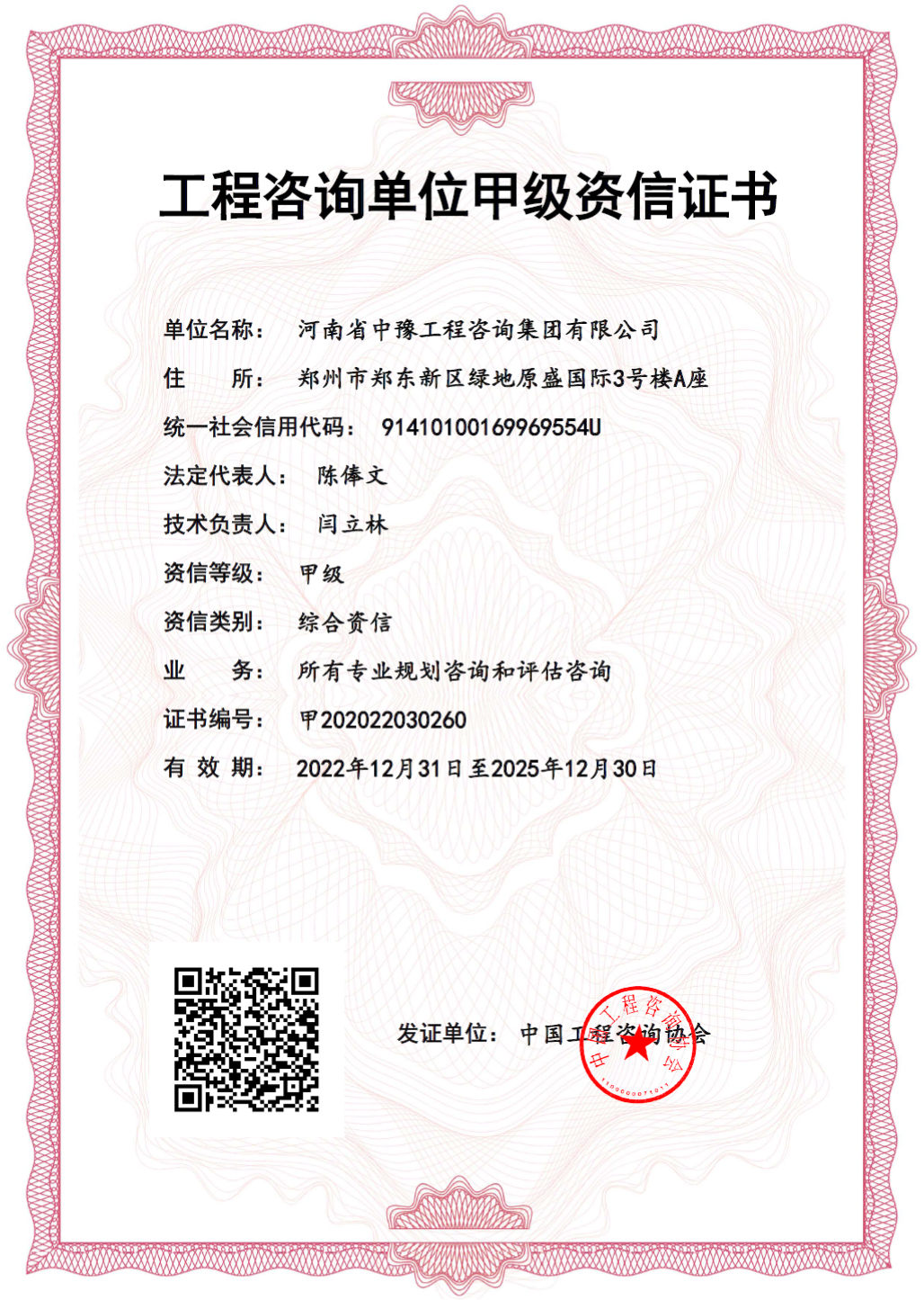 工程咨詢資信等級是衡量工程咨詢企業(yè)綜合實力的重要標(biāo)志,也是工程咨詢企業(yè)發(fā)展的重要基石。甲級綜合資信可以作為所有專業(yè)規(guī)劃咨詢和評估咨詢業(yè)務(wù)能力的參考。目前,中豫咨詢集團(tuán)已獲得工程咨詢單位甲級綜合資信和7個甲級專業(yè)資信,企業(yè)綜合實力邁上新臺階。