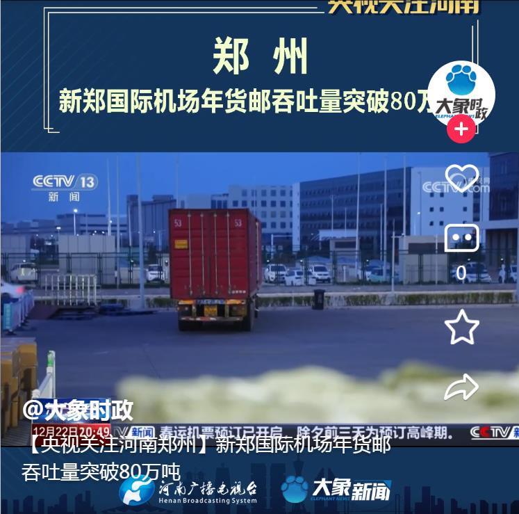 【央視關(guān)注河南】新鄭國際機(jī)場年貨郵吞吐量突破80萬噸