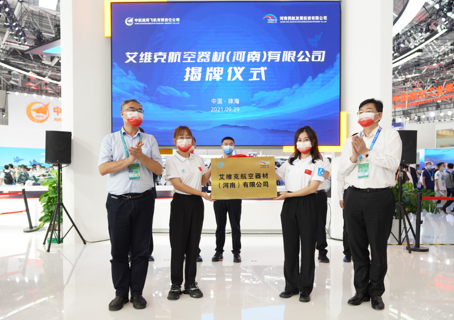 9月29日,艾維克航空器材(河南)有限公司(以下簡(jiǎn)稱艾維克河南公司)揭牌儀式在珠海第十三屆中國(guó)國(guó)際航空航天博覽會(huì)現(xiàn)場(chǎng)舉行。河南民航發(fā)展投資有限公司(以下簡(jiǎn)稱河南航投)黨委書(shū)記、董事長(zhǎng)張明超,中航通用飛機(jī)有限責(zé)任公司(以下簡(jiǎn)稱航空工業(yè)通飛)黨委書(shū)記、董事長(zhǎng)白小剛共同揭牌。河南省發(fā)展改革委副主任李迎偉出席儀式,河南航投副總經(jīng)理謝亞偉及相關(guān)業(yè)務(wù)負(fù)責(zé)人參加。