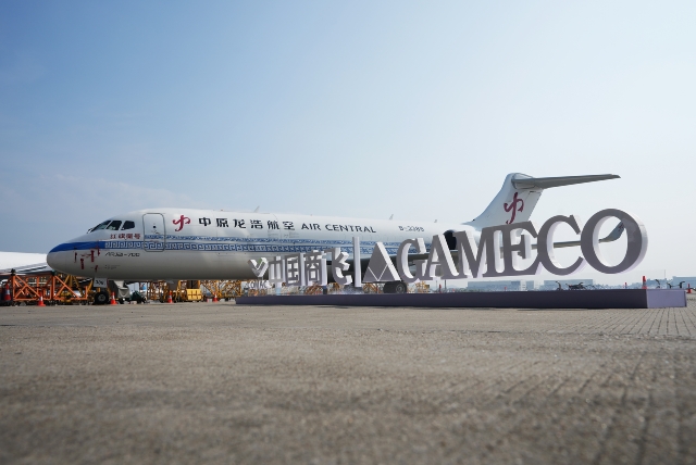 10月30日,中國商飛在廣州向河南航投集團(tuán)交付ARJ21客改貨飛機(jī)。作為啟動用戶,這也是河南航投收到的首架ARJ21客改貨飛機(jī)。中國商飛黨委書記、董事長賀東風(fēng)向集團(tuán)黨委書記、董事長張明超移交交付紀(jì)念鑰匙。中國商飛黨委副書記、董事譚萬庚,中原龍浩航空董事長郭建業(yè)等致辭,中國商飛黨委常委、副總經(jīng)理、總會計(jì)師吳永良向河南航投租賃頒發(fā)飛機(jī)銷售證,民航中南局副局長陳維向中原龍浩航空頒發(fā)單機(jī)適航證、國籍登記證、無線電臺證。中國商飛黨委常委、副總經(jīng)理張玉金主持儀式。