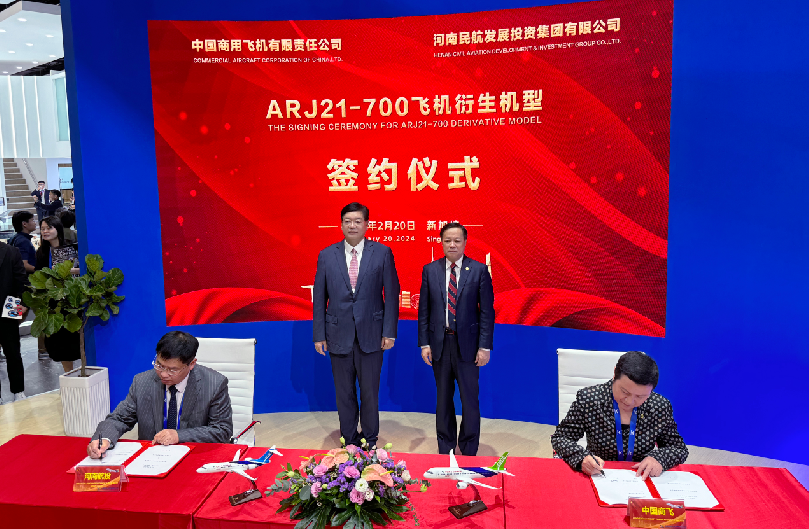 2月20日,在中國商用飛機(jī)有限責(zé)任公司(以下簡(jiǎn)稱中國商飛)黨委書記、董事長賀東風(fēng)和河南航投集團(tuán)黨委書記、董事長張明超的共同見證下,河南航投集團(tuán)子公司河南航投航空設(shè)備租賃有限公司(以下簡(jiǎn)稱航投租賃)與中國商飛在新加坡航展首日簽署了《飛機(jī)購買意向書》(以下簡(jiǎn)稱意向書),雙方就國產(chǎn)ARJ21-700衍生機(jī)型達(dá)成購買意向。