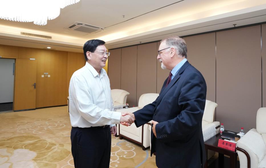 湯普森介紹了自己此行到河南尤其是參觀河南航投集團(tuán)航空制造產(chǎn)業(yè)園、河南航投航空培訓(xùn)中心的情形。他表示,盧森堡貨航是當(dāng)?shù)胤浅V匾钠髽I(yè),河南航投收購(gòu)盧森堡貨航35%的股權(quán)在當(dāng)?shù)厥寝Z動(dòng)新聞,《編年史》自那時(shí)起就一直關(guān)注著雙方的合作。湯普森見(jiàn)證了鄭盧“空中絲綢之路”貨運(yùn)量不斷增長(zhǎng)、客運(yùn)航線開(kāi)通和文物雙向交流等重要突破,也曾參加了盧森堡首屆龍舟節(jié)并樂(lè)見(jiàn)河南航投和盧森堡貨航同時(shí)組隊(duì)參賽。隨后,湯普森就今年6月中豫航空集團(tuán)在盧森堡發(fā)債、與當(dāng)?shù)仄髽I(yè)簽約等,詳細(xì)了解了今后雙方的合作思路。湯普森希望中豫航空集團(tuán)與盧森堡當(dāng)?shù)仄髽I(yè)的合作不斷取得新成效,并通過(guò)體育文化交流等增進(jìn)兩地友誼。談及此次來(lái)豫,湯普森很開(kāi)心,直言自己此行收獲頗豐,不僅了解了河南厚重的歷史文化底蘊(yùn),也在行程中感受到河南的開(kāi)放和包容,將把所見(jiàn)所聞所感帶回去,講好豫盧共建“空中絲綢之路”的友好故事。