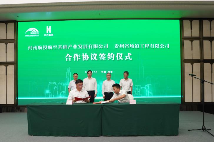 7月16日,河南民航發(fā)展投資有限公司(簡(jiǎn)稱河南航投)與四川華西集團(tuán)有限公司(簡(jiǎn)稱四川華西)在成都舉行了簡(jiǎn)短而熱烈的簽約儀式,兩家跨省國(guó)企約定,在民航產(chǎn)業(yè)展開全面合作。河南航投黨委書記、董事長(zhǎng)張明超,黨委副書記、總經(jīng)理、副董事長(zhǎng)劉建葆,四川華西黨委書記、董事長(zhǎng)楊斌,黨委副書記、總經(jīng)理、副董事長(zhǎng)馬林出席。張明超、楊斌分別致辭,劉建葆、馬林代表雙方簽訂《戰(zhàn)略合作協(xié)議》,河南航投基礎(chǔ)產(chǎn)業(yè)公司董事長(zhǎng)趙楠和貴州場(chǎng)道公司執(zhí)行董事劉國(guó)呈代表子公司簽訂《合資合作協(xié)議》。