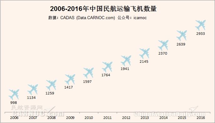2016國內(nèi)民航機隊達2933架 全年引進369架