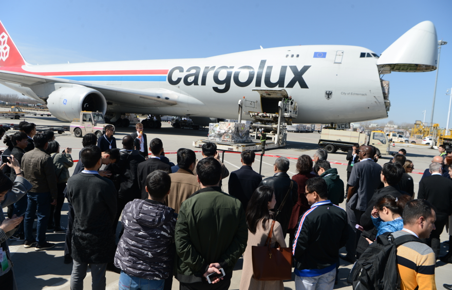 按照研討會(huì)安排,3月15日,與會(huì)人員參觀了當(dāng)天抵達(dá)鄭州機(jī)場的盧森堡貨航飛機(jī),現(xiàn)場進(jìn)一步了解了航線的運(yùn)營和貨物裝載情況。